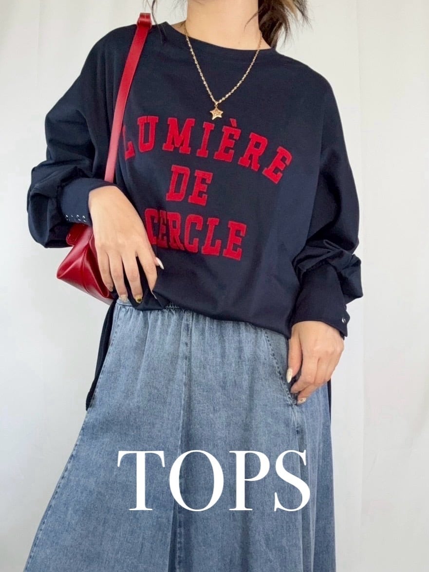 ZAMPA クルーネック7分袖ワイド箔ロゴT