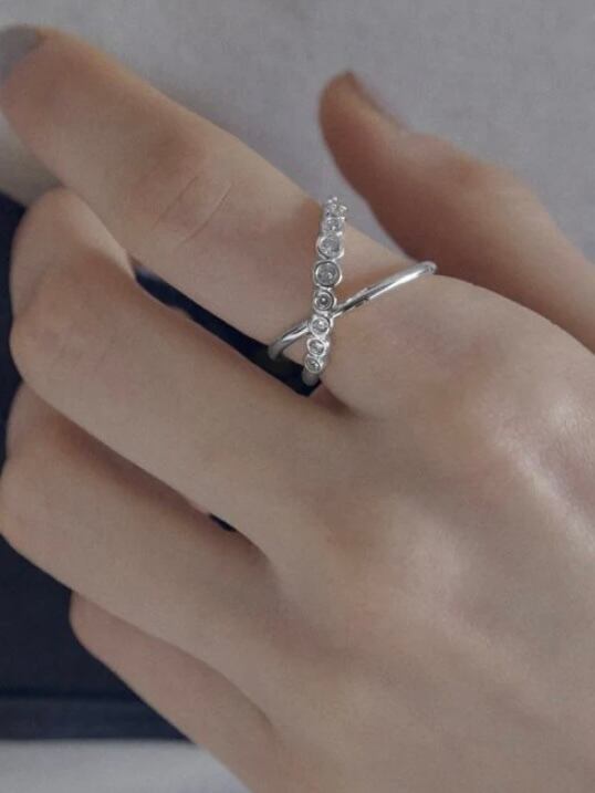 クロスしたラインにキュービックジルコニアをあしらったリング。カジュアルな普段使いはもちろん、結婚式や卒業式・入学式などのオケージョンシーンやパーティーシーンにもオススメです。