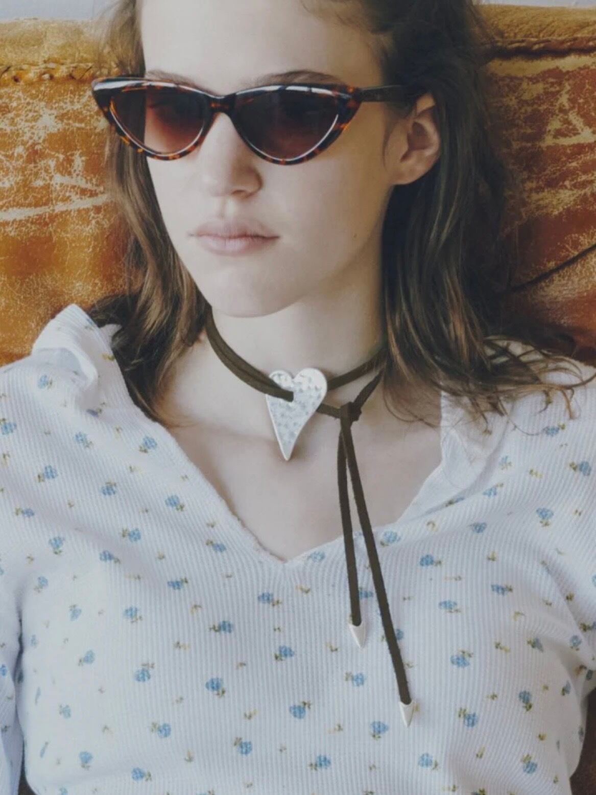 GOLDY エッジーハートスウェードスレッドチョーカー