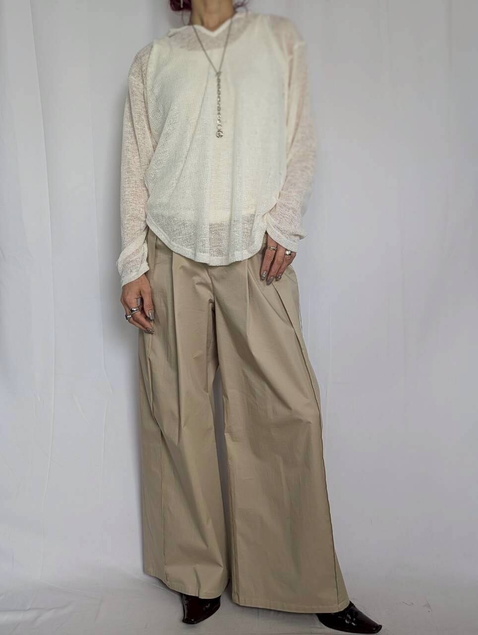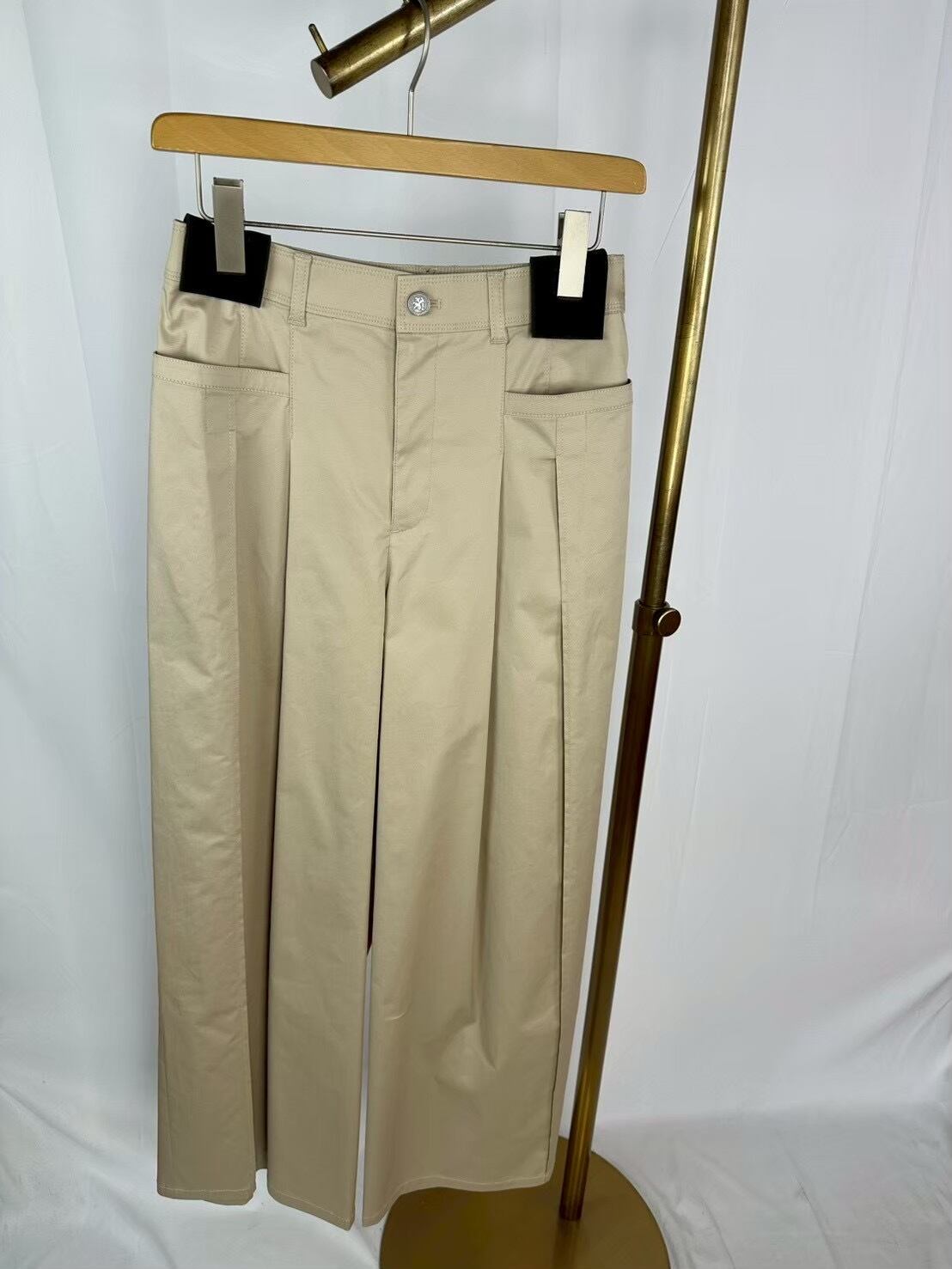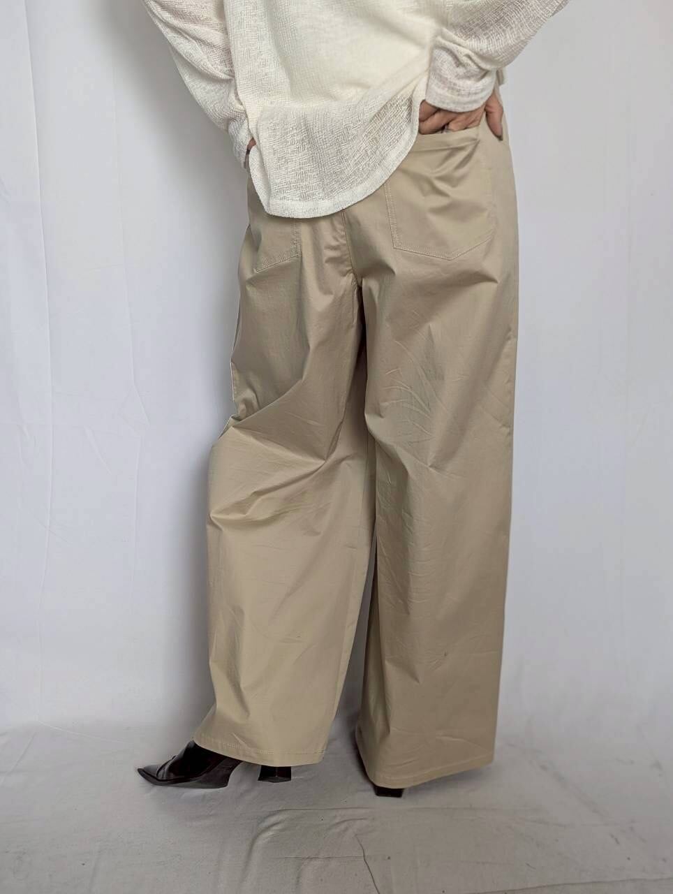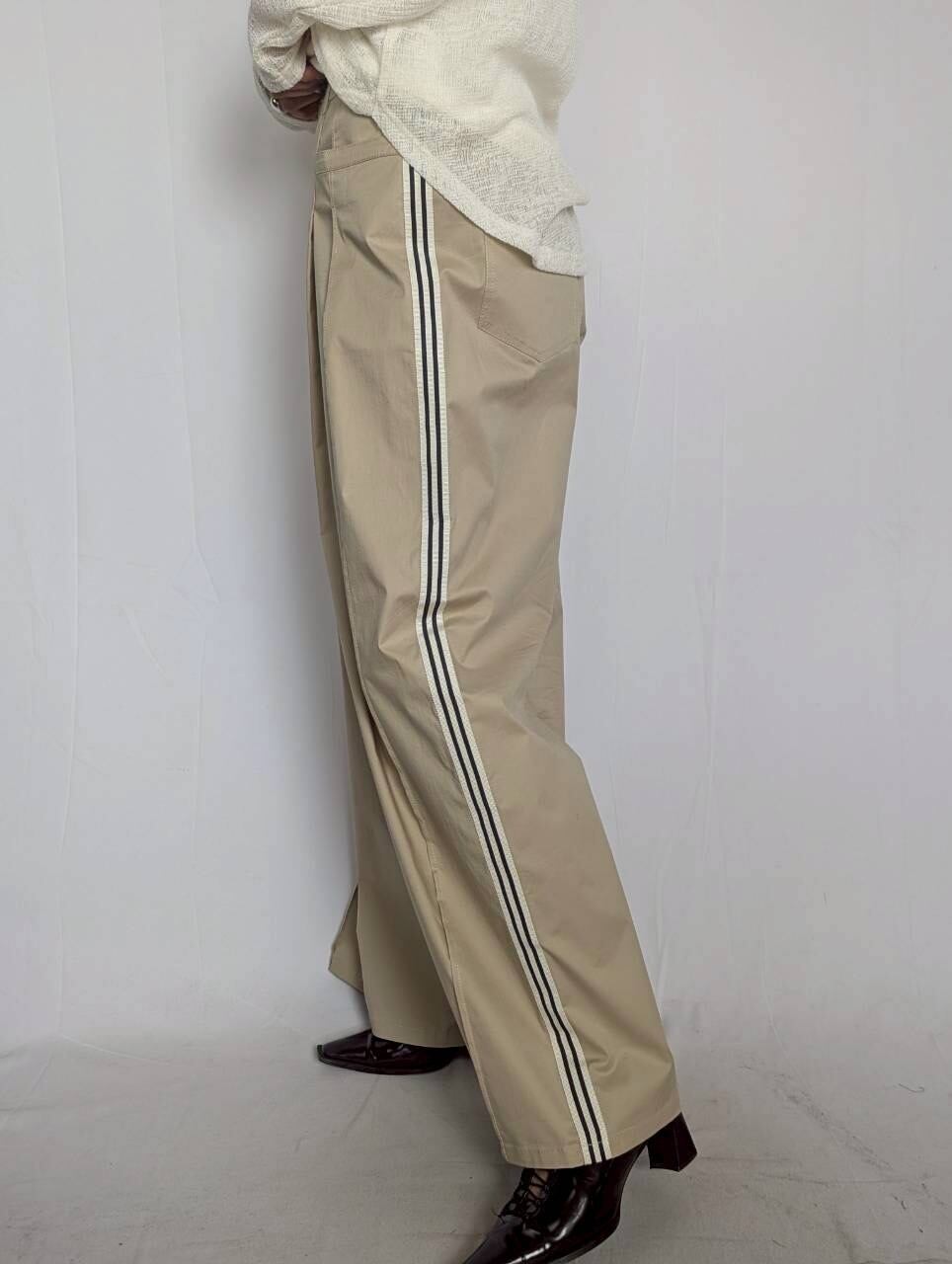 フロントタックの効いた立体感あるパンツ。脚のラインを拾わないハリ感のある生地で綺麗めスタイルにも取り入れやすい◎左側のみのグログランテープデザインでかっこよさもプラス。