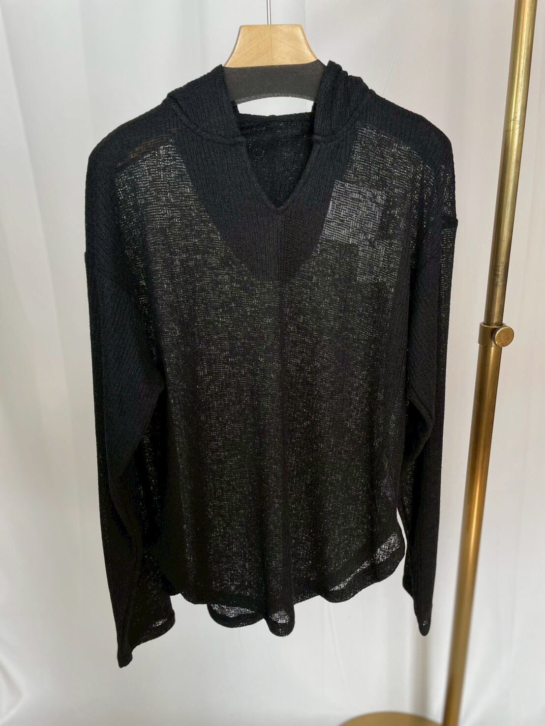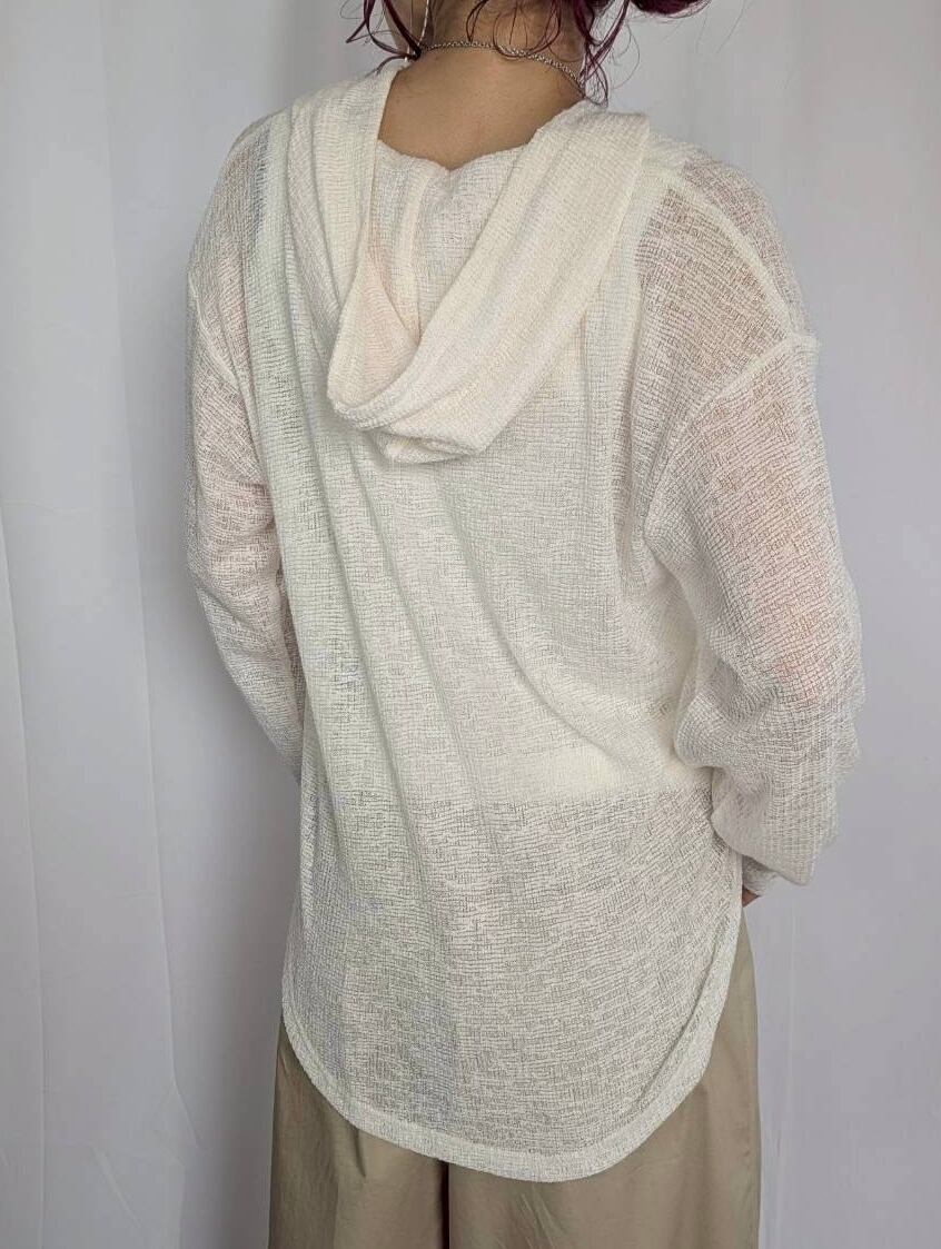 少しシアー感のある麻ブレンドのニットソー素材。さらっとした快適な肌触りで、前襟ぐりに入れたスリットが女性らしい華奢な印象に♡オーバーすぎないサイズ感でレイヤードスタイルにもおすすめ♪