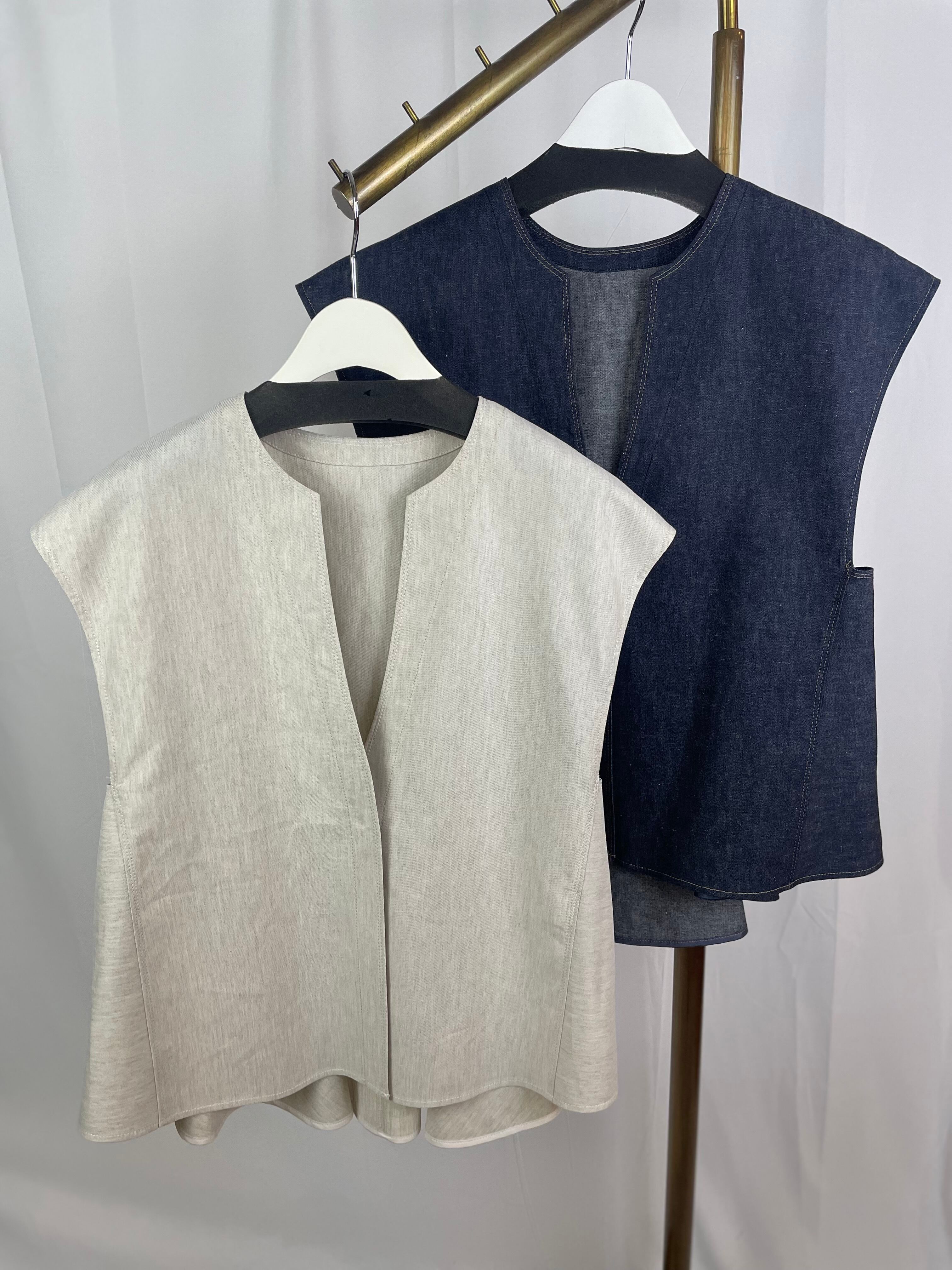 BLUE FRONCE リネン混バックペプラムベスト