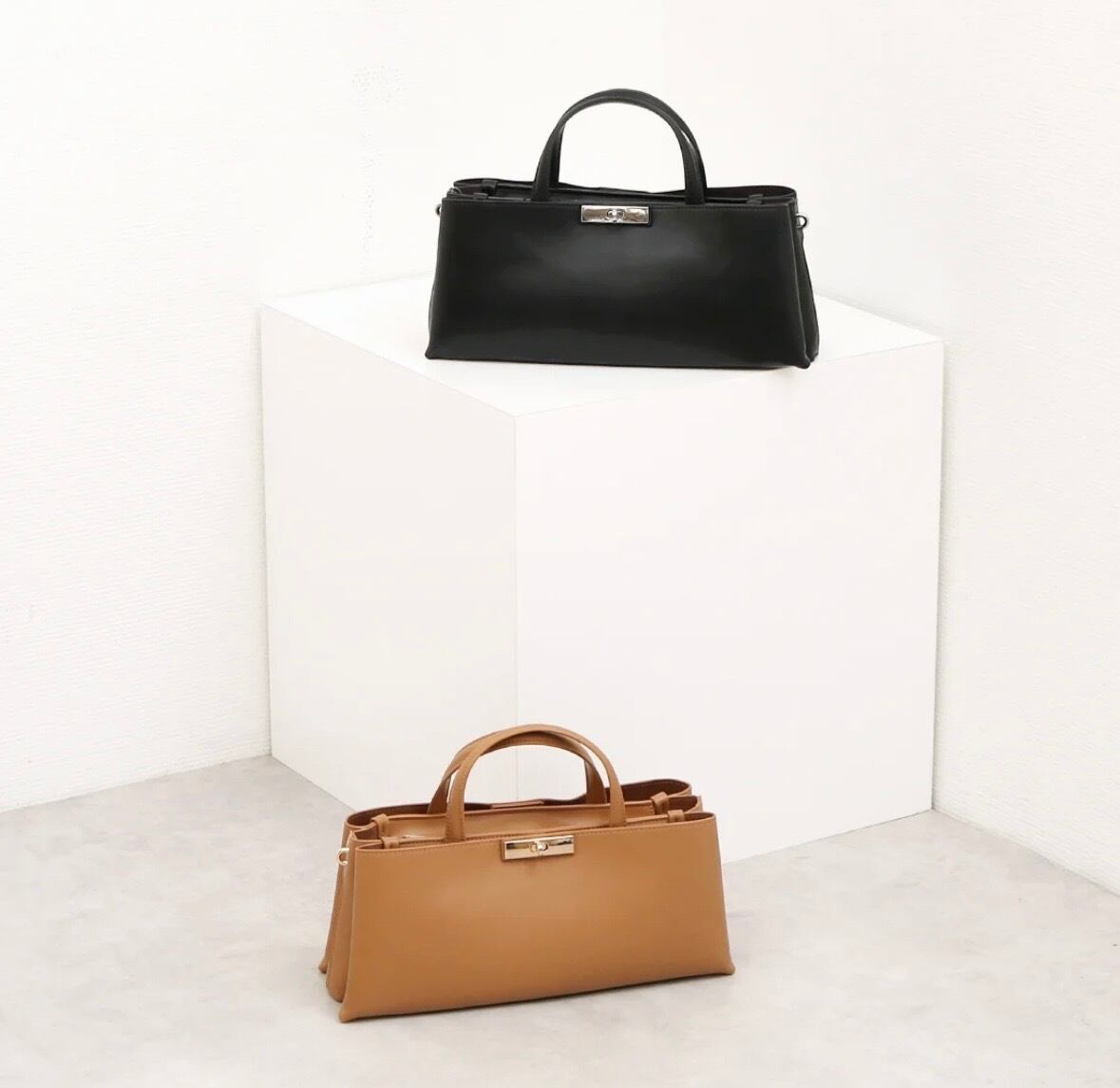 少し太めのショルダーが新鮮で、肩掛けからクロスボディまで使って頂けます。
